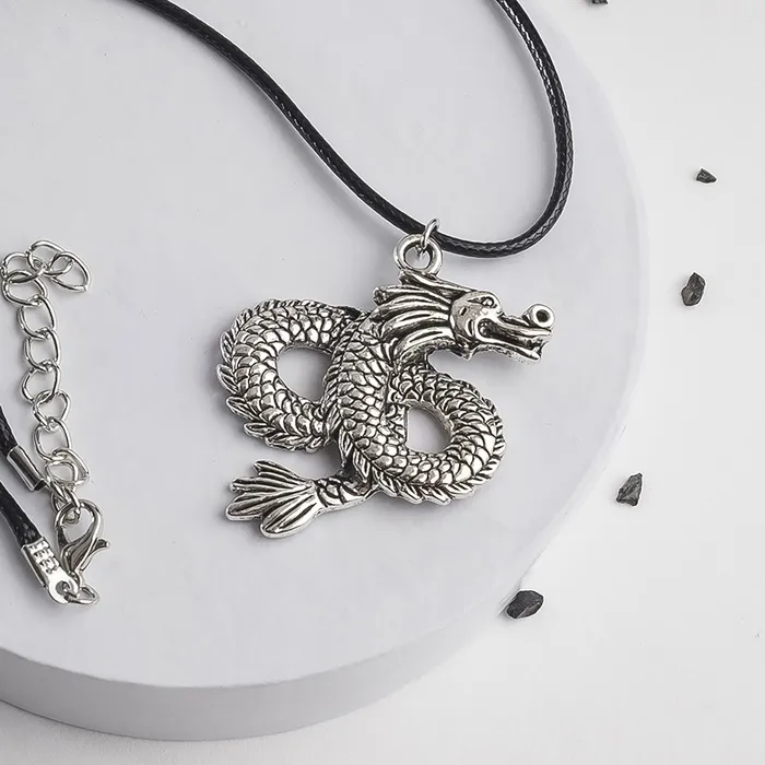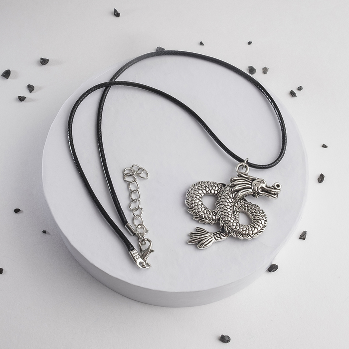 Кулон на шнурке «Змей», цвет чернёное серебро на чёрном шнурке, 42 см — Характеристики