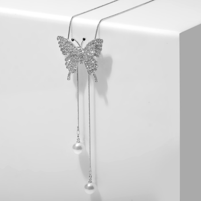 Кулон на цепочке «Бабочка», с жемчугом, белый в серебре, 70 см — Характеристики