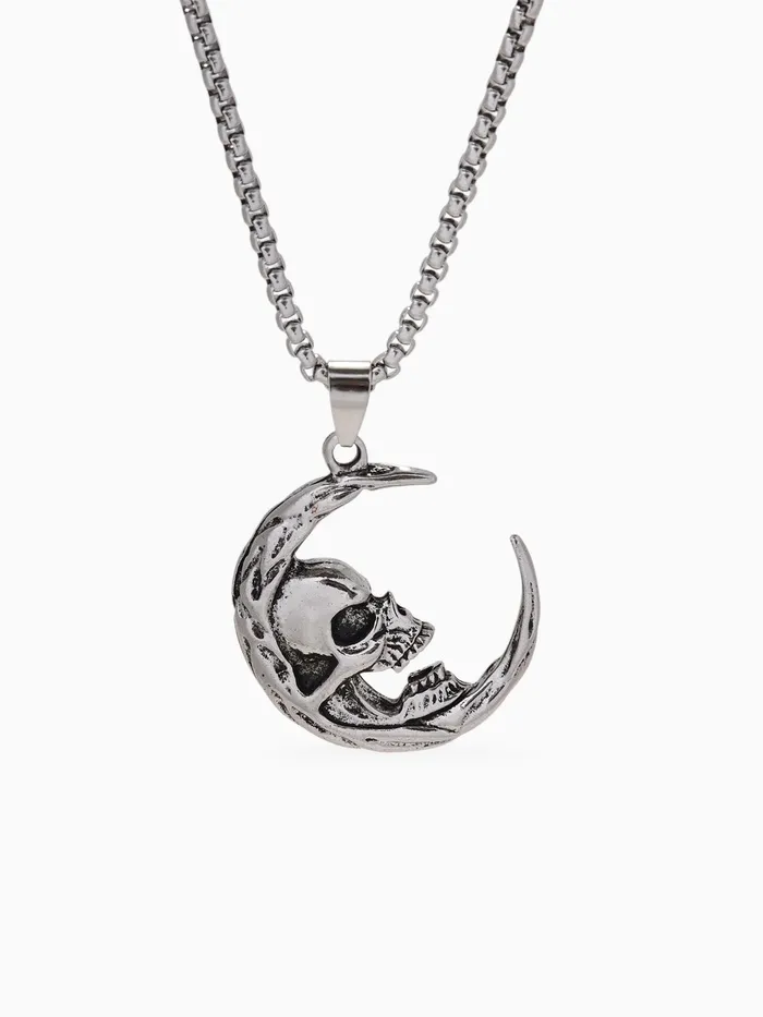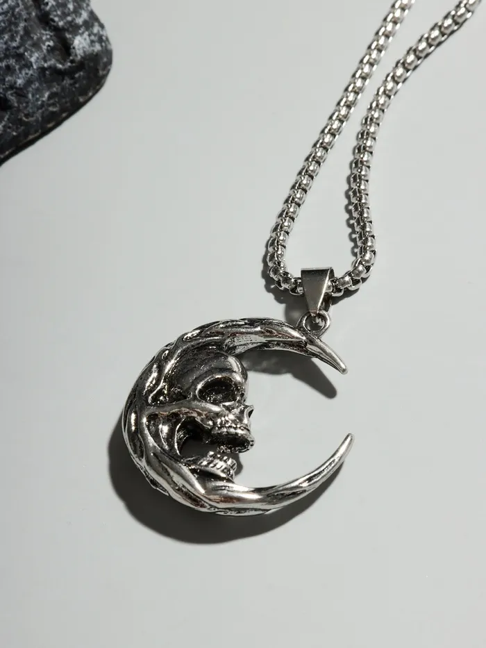Кулон на цепочке «Череп», полумесяц, цвет чернёное серебро, L=70 см — Характеристики