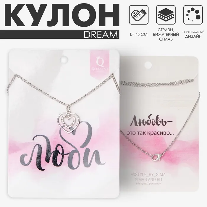 Кулон на цепочке Dream люби, белый в серебре, 45 см — Характеристики