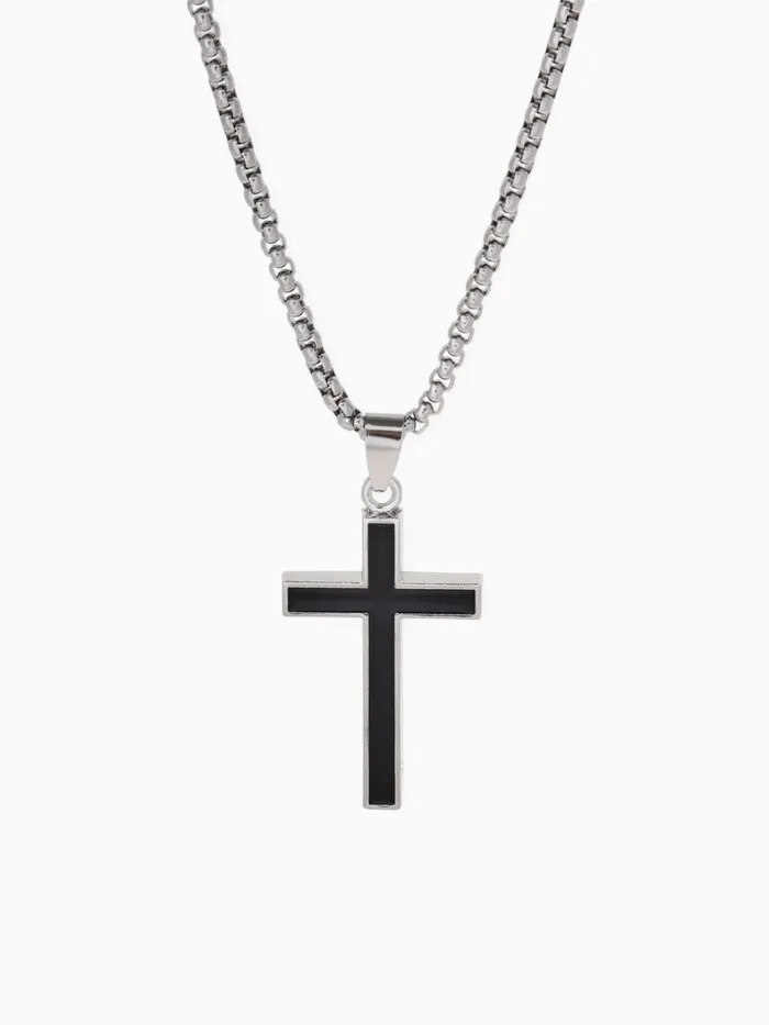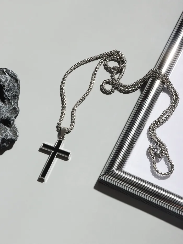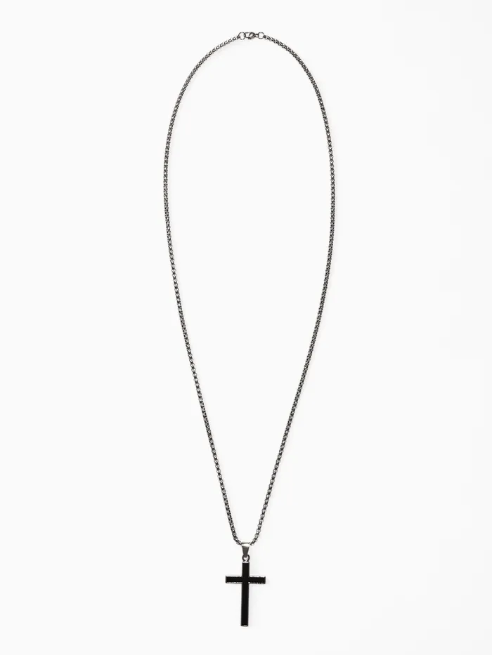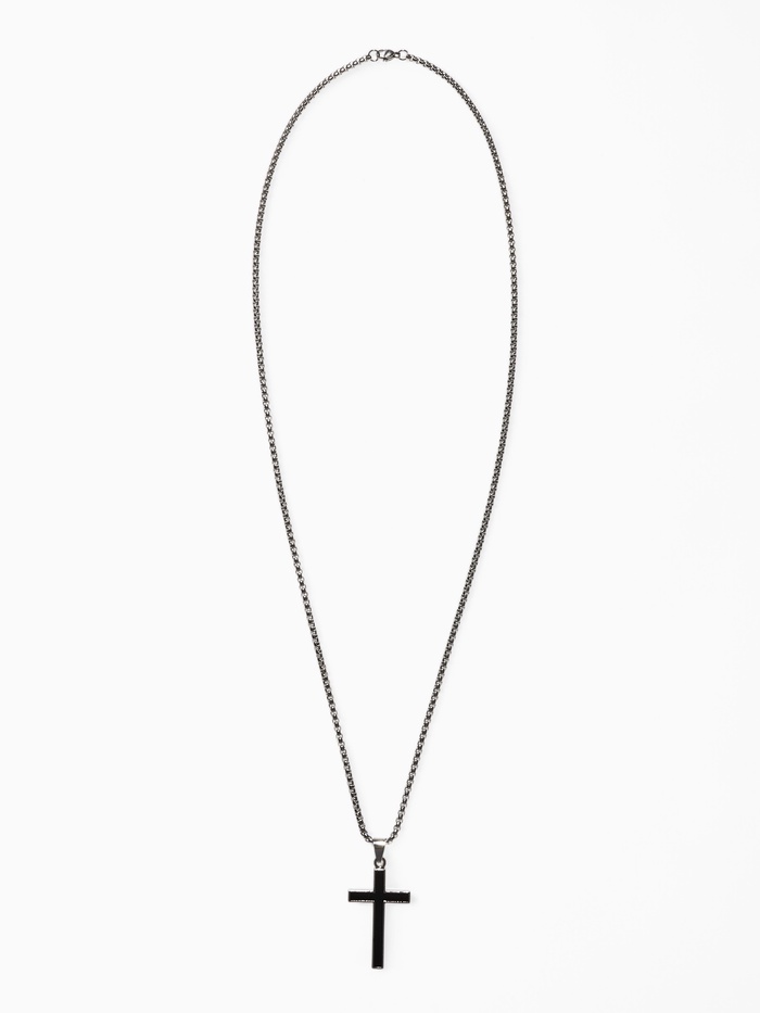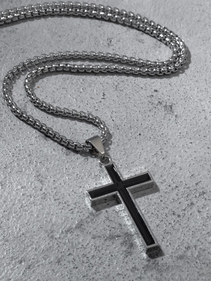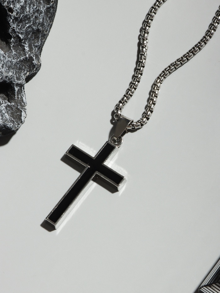 Кулон на цепочке «Крест», прямой, чёрный в серебре, 70 см — Характеристики