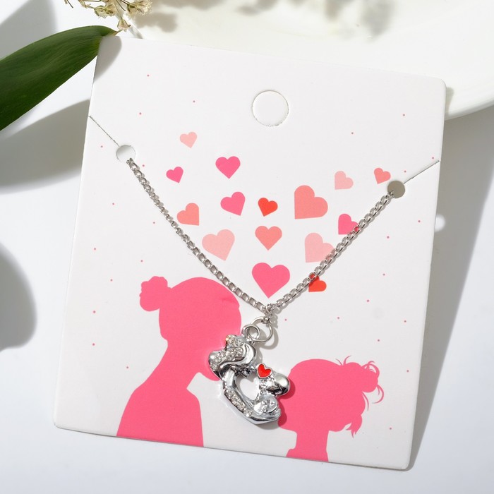 Кулон на цепочке «Мама», поцелуй, красно-белый в серебре, 45 см