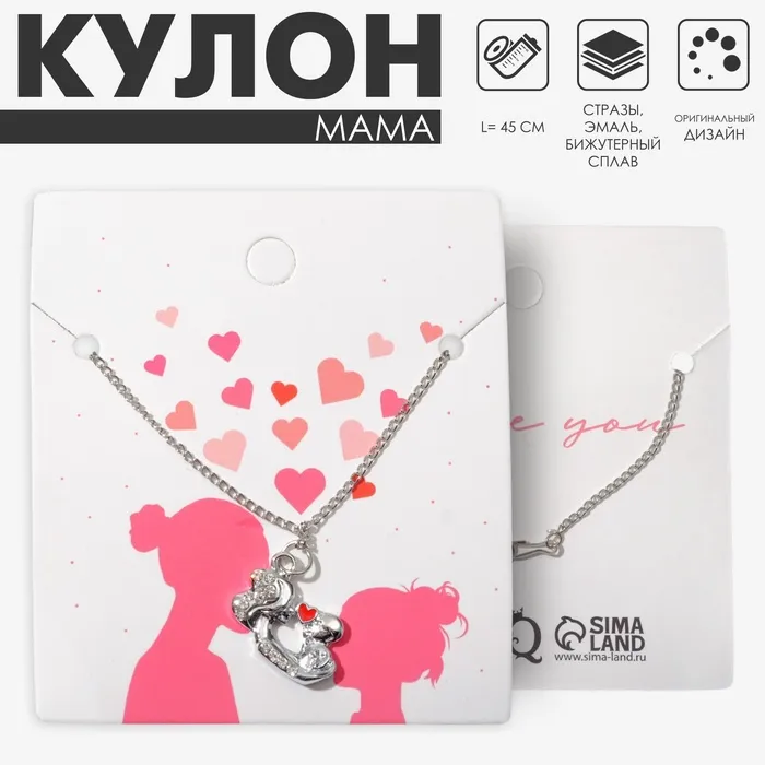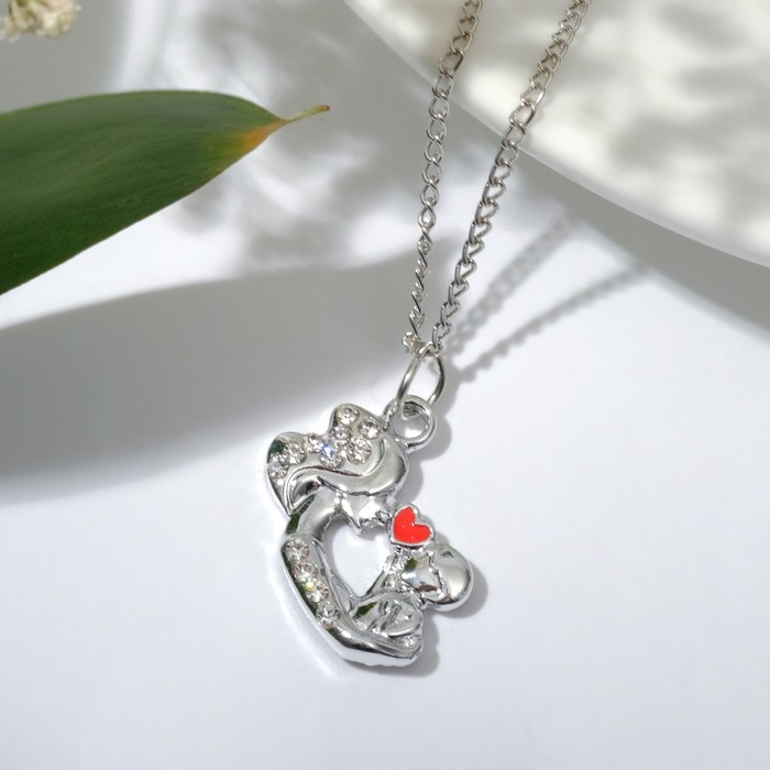 Кулон на цепочке «Мама», поцелуй, красно-белый в серебре, 45 см — Характеристики