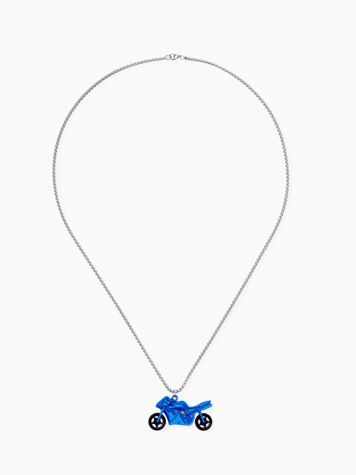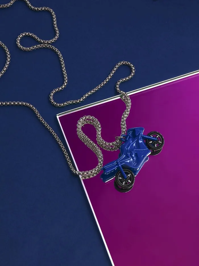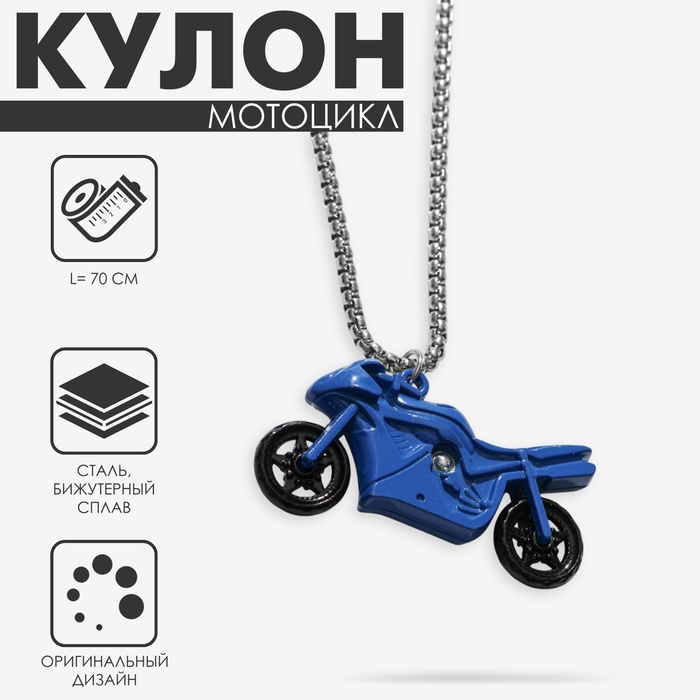 Кулон на цепочке «Мотоцикл», сине-чёрный в серебре, 70 см — Характеристики