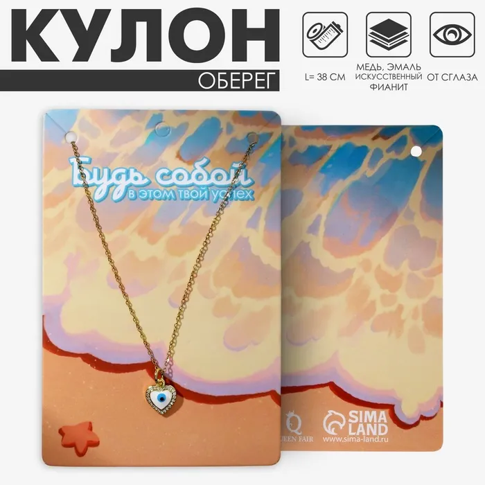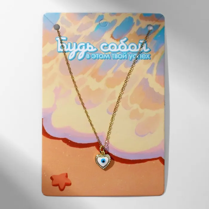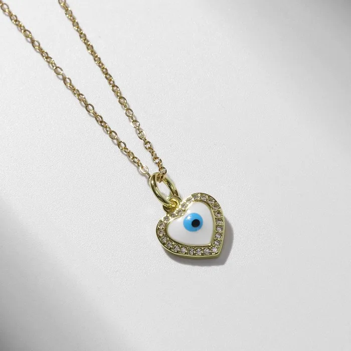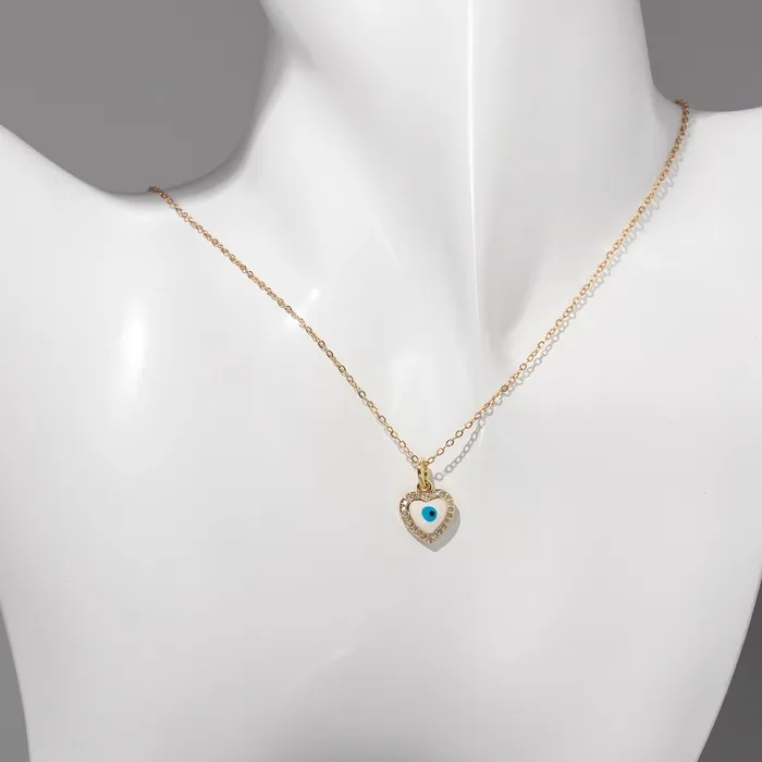 Кулон на цепочке оберег «Мини», сердце с глазом, бело-голубой в серебре, 38 см — Характеристики