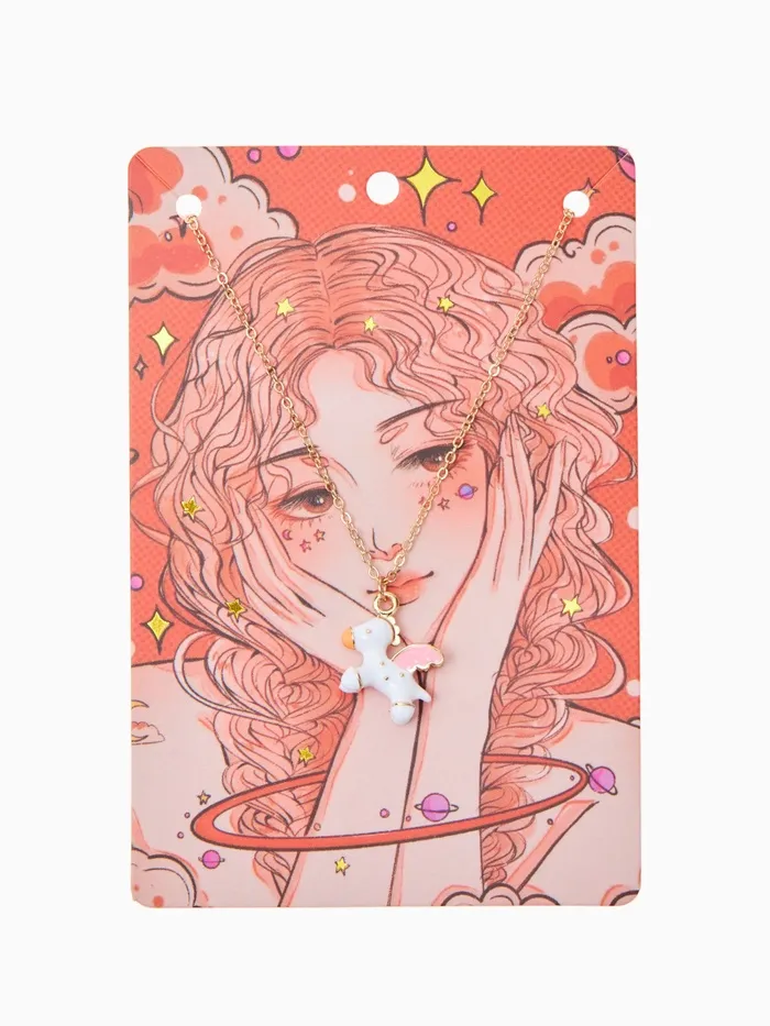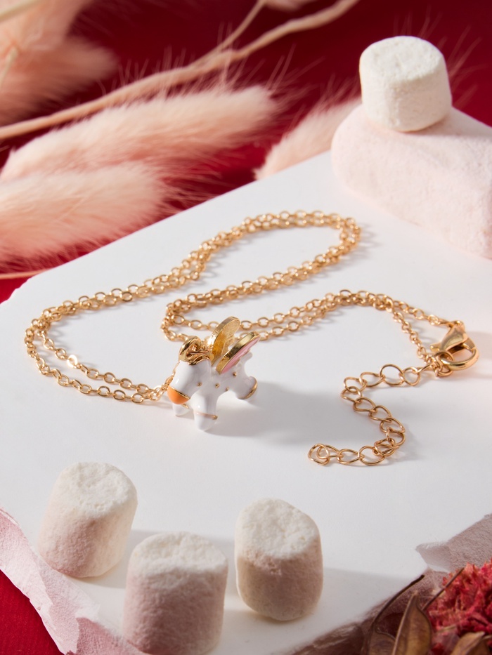 Кулон на цепочке «Прелесть», пони с крыльями, бело-розовый в золоте, 40 см — Характеристики