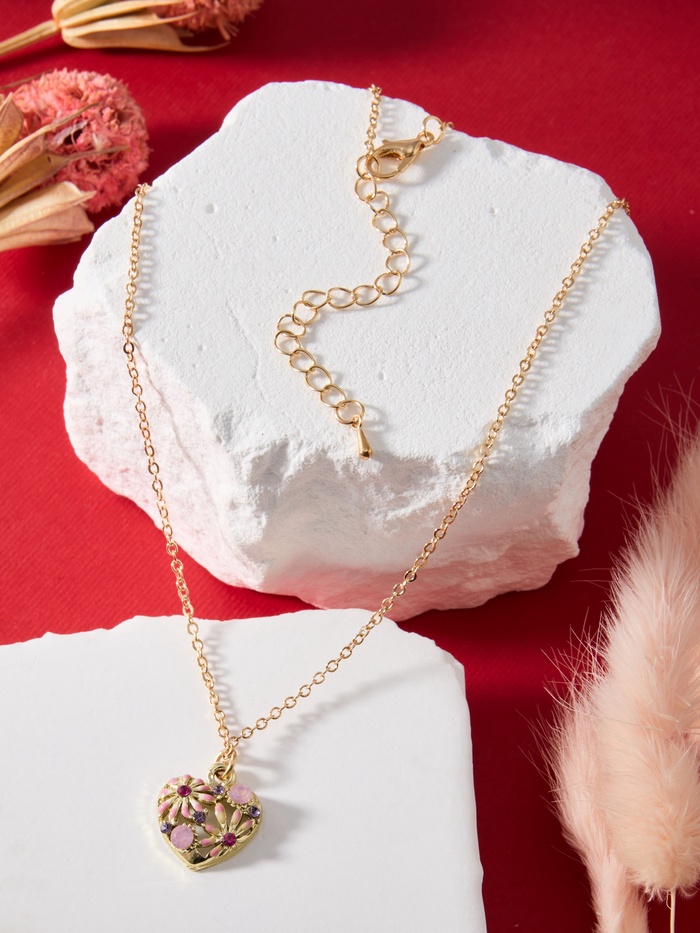 Кулон на цепочке «Прелесть», сердце с цветами, розово-фиолетовый в золоте, 40 см — Характеристики