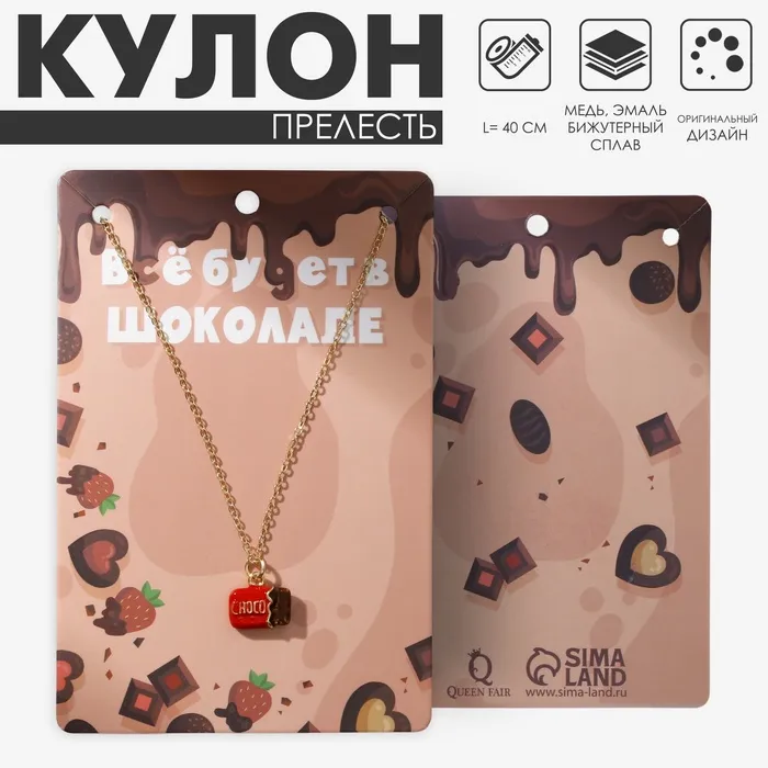Кулон на цепочке «Прелесть», шоколад, коричнево-красный в золоте, 40 см — Характеристики