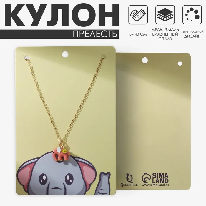 Кулон на цепочке «Прелесть», слоник, розовый в золоте, 40 см — Характеристики