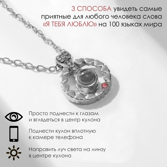 Кулон на цепочке «Проекция», я тебя люблю, круг сердец, цвет серебро, 40 см — Характеристики