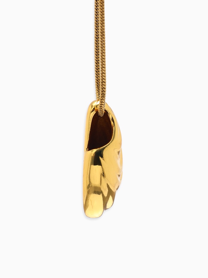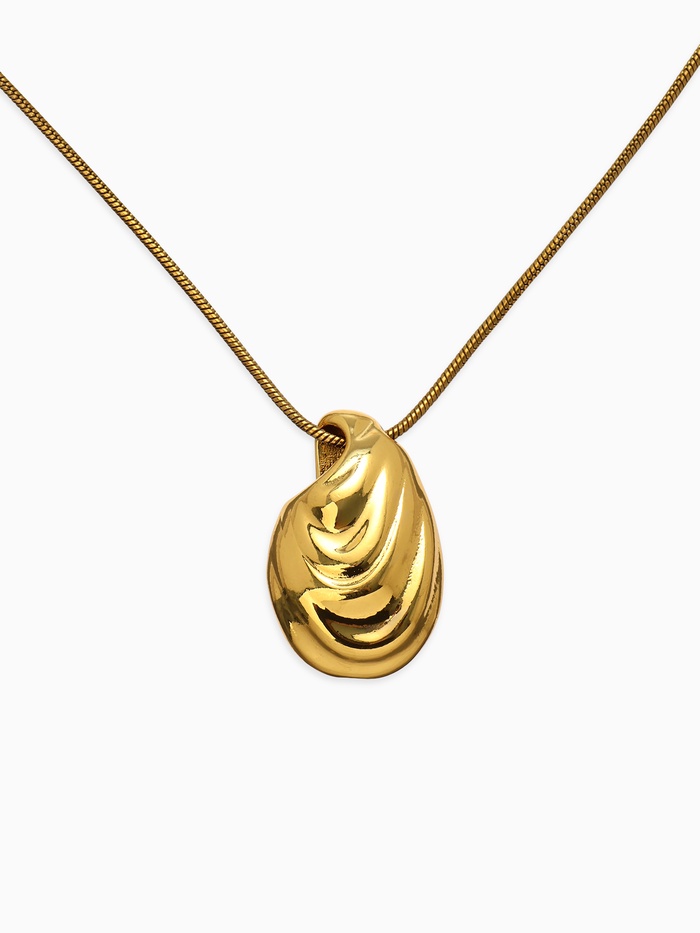 Кулон изготовлен из качественного металла, покрытого тонким слоем золота, подчеркивающим изысканность и красоту ракушки. Мягкие полутона золота и гладкая текстура изделия делают его стильным и элегантным дополнением к любому образу.