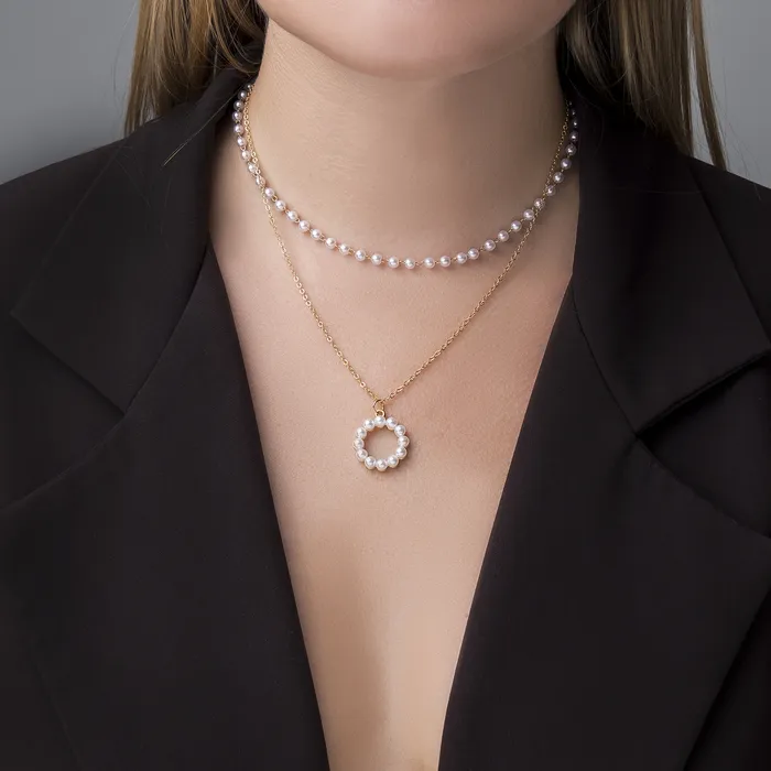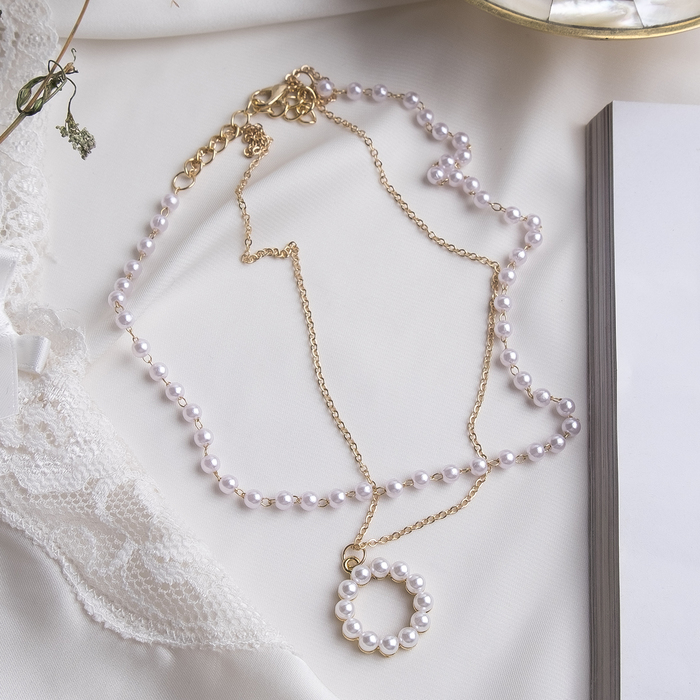 Кулон на цепочке с жемчугом «Цепь», олимпия, круг, белый в золоте, 40 см — Характеристики