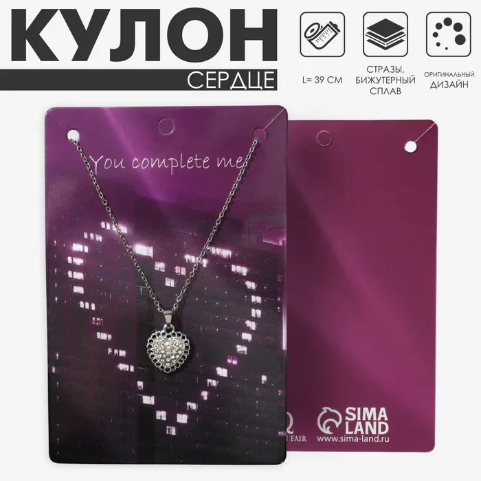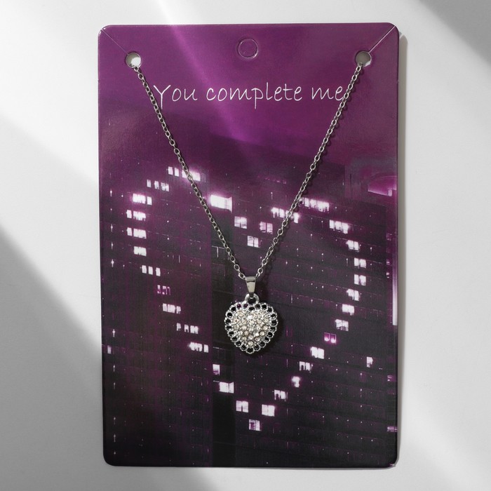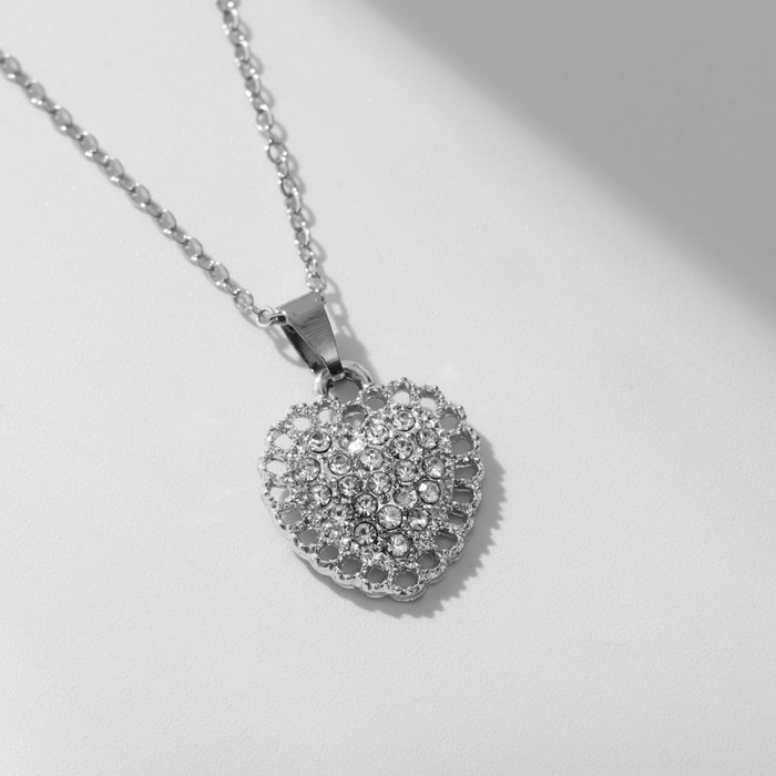 Кулон на цепочке «Сердце», блестящее, белый в серебре, 39 см — Характеристики