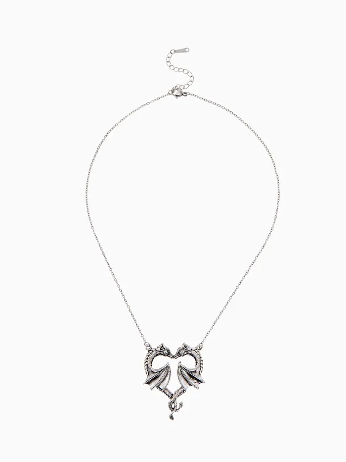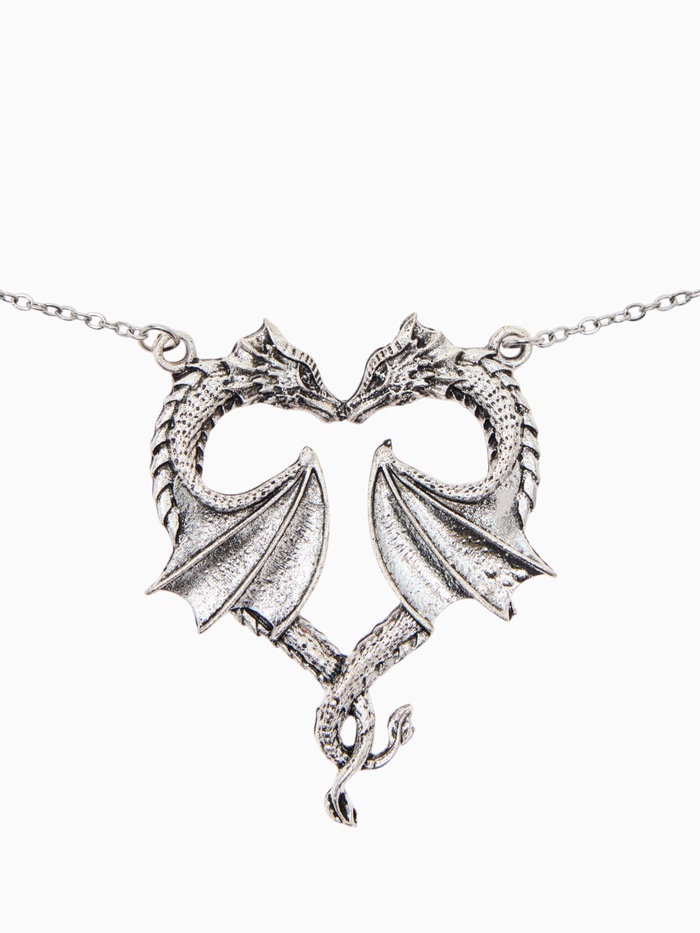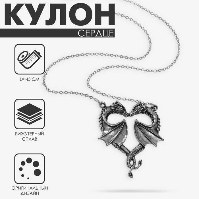 Кулон на цепочке «Сердце», с дракончиками, цвет чернёное серебро, 45 см — Характеристики
