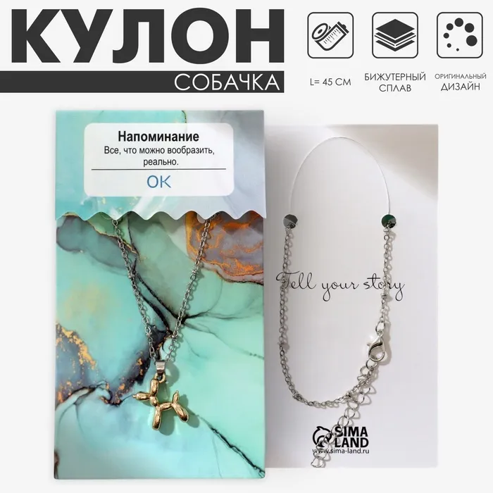 Кулон на цепочке «Собачка», игрушечная, цвет золото в серебре, 45 см — Характеристики