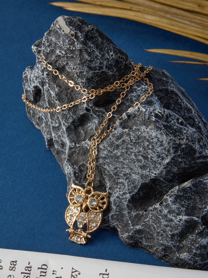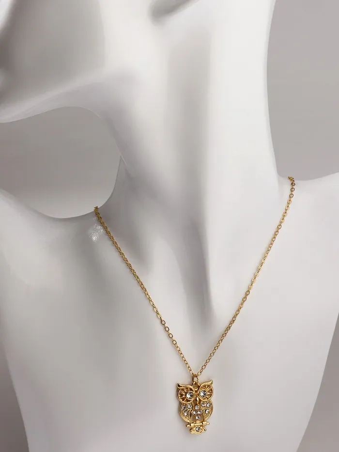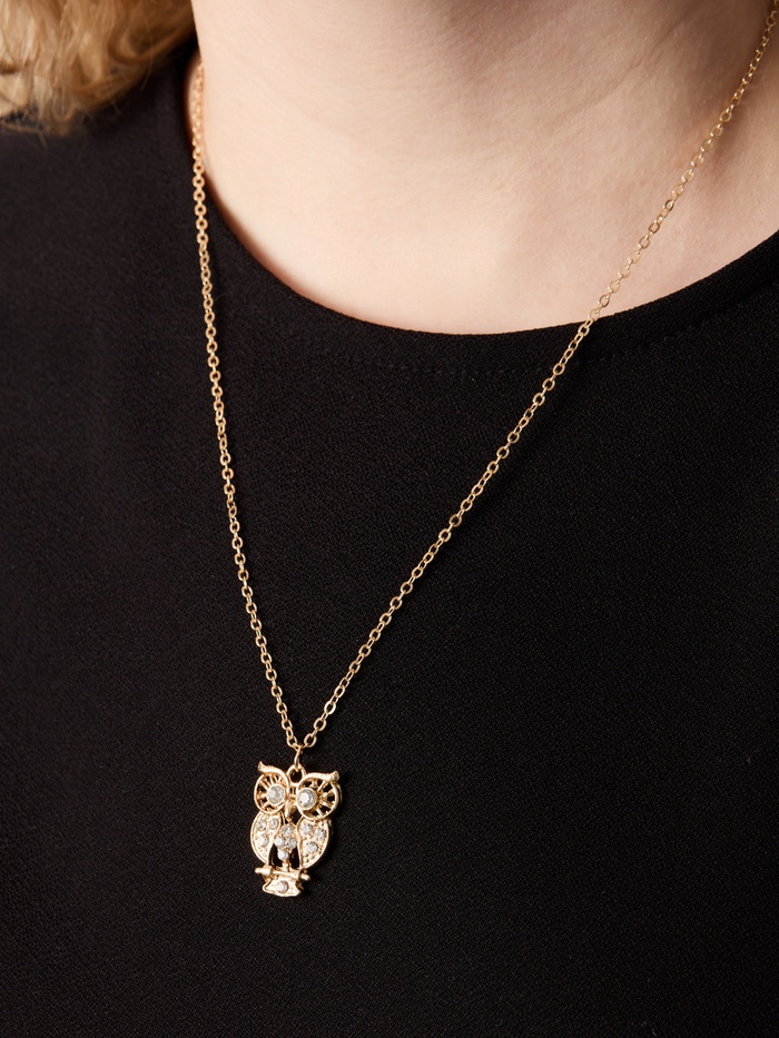 Кулон на цепочке «Сова», ажурная, белый в золоте, 45 см — Характеристики