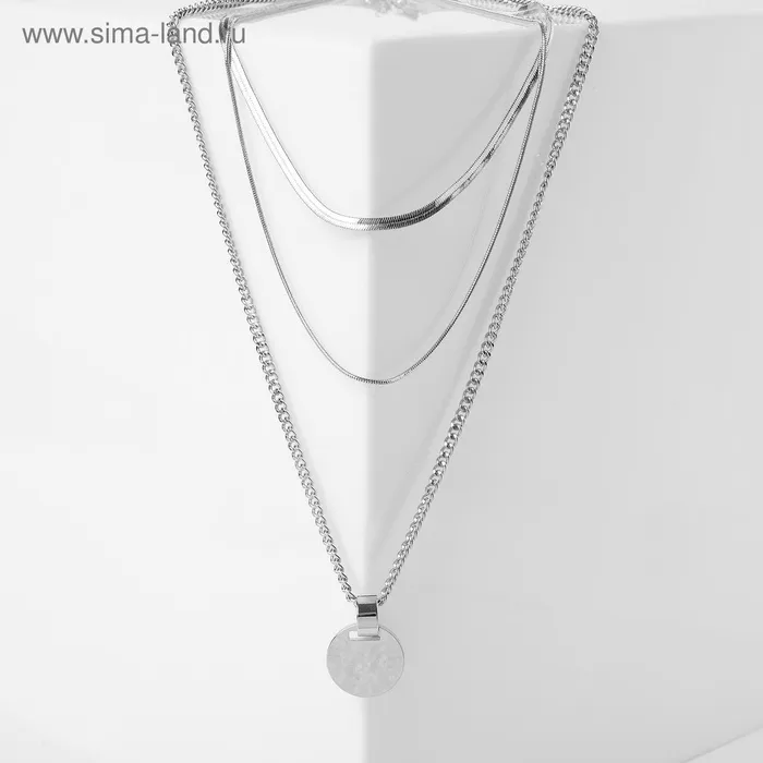 Кулон на цепочке «Цепь», классический диск, цвет серебро, 50 см — Характеристики