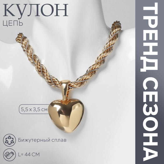 Кулон на цепочке «Цепь», сердце, жгут, цвет золото, 44 см — Характеристики