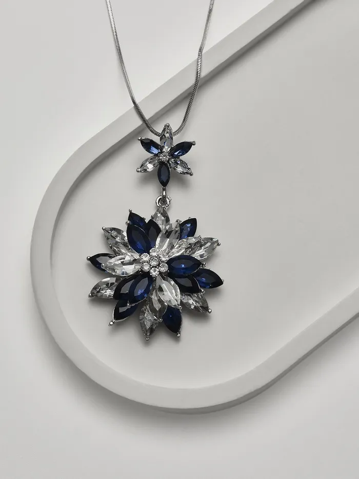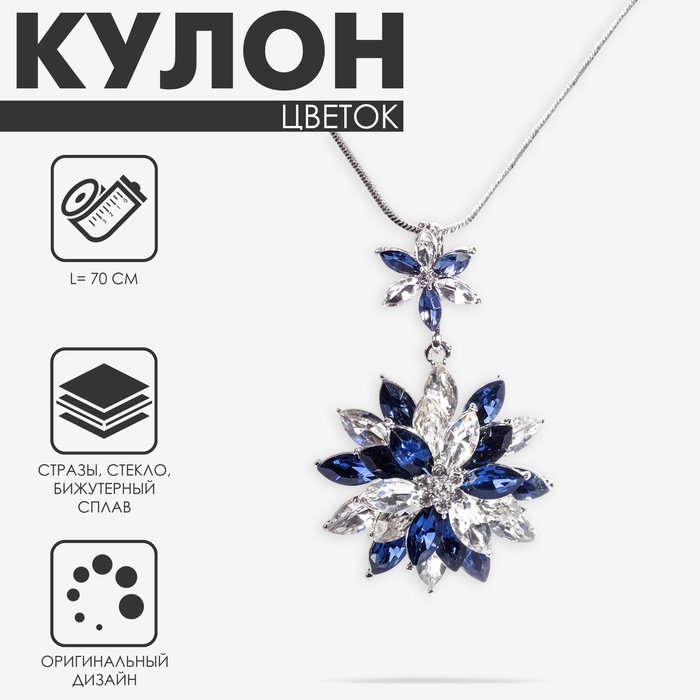 Кулон на цепочке «Цветок», мимоза, бело-синий в серебре, L=70 — Характеристики