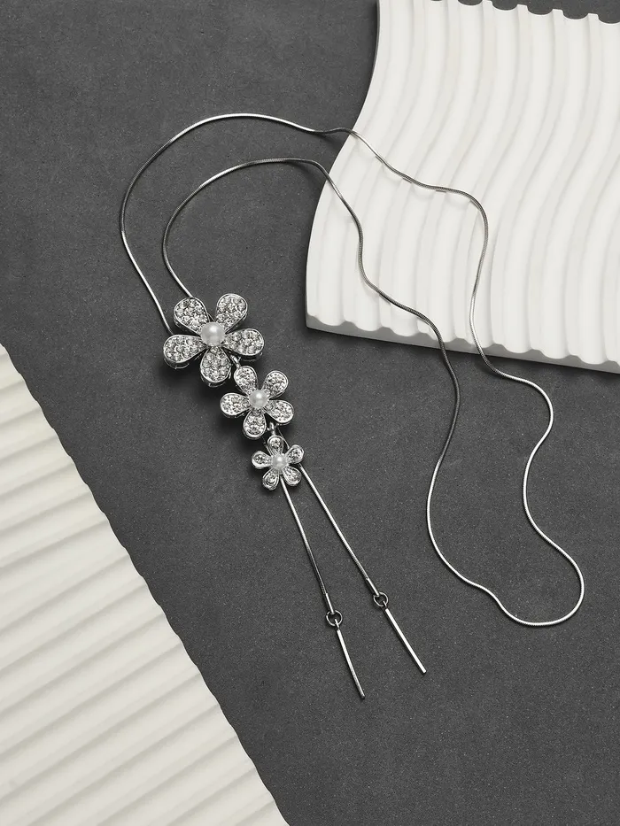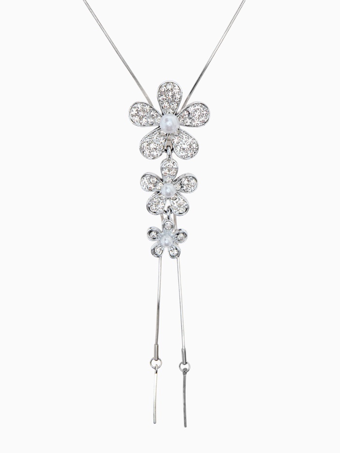 Кулон на цепочке «Цветы», с жемчугом, белый в серебре, 70 см — Характеристики
