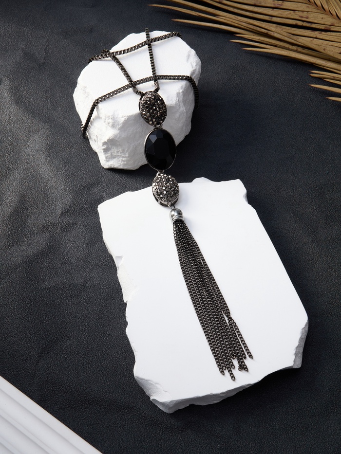 Кулон на цепочке «Утончённость», овалы с цепочкой, чёрно-серый в сером металле, 65 см — Характеристики