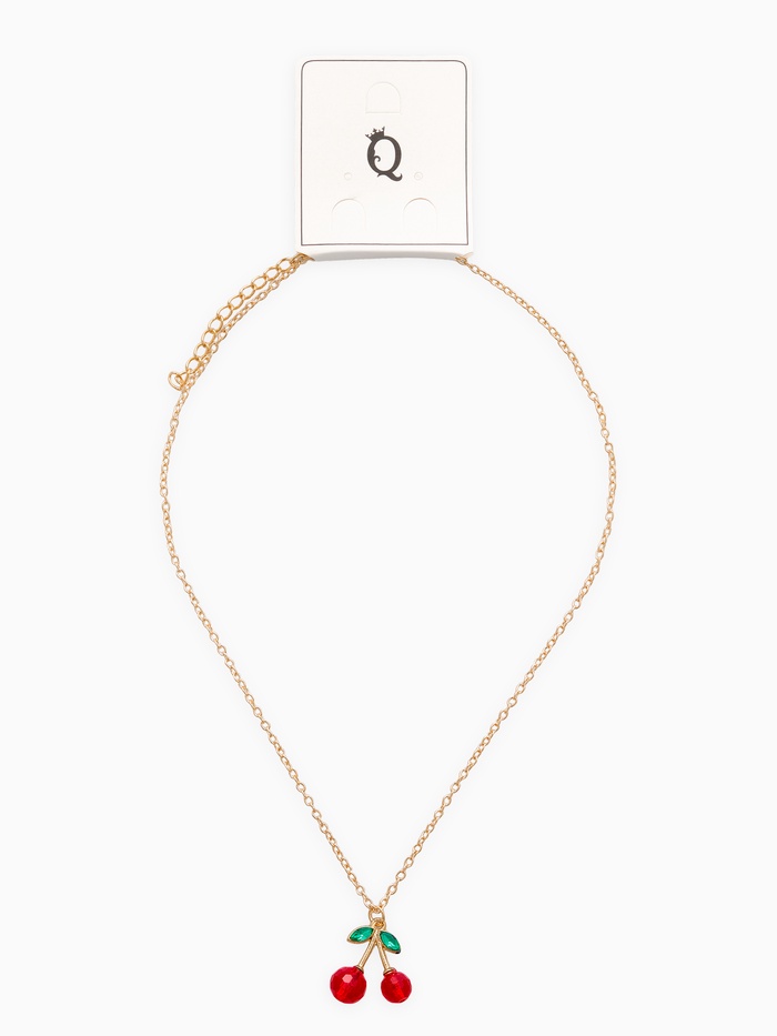 Зарядитесь атмосферой летнего леса и вкусом сочных ягод с оригинальным кулоном в виде граневой вишни, изящно подвешенным на цепочке золотистого цвета. Украшение выполнено в теплой гамме и дополнено прозрачным стеклянным элементом, добавляющим блеска и элегантности.
