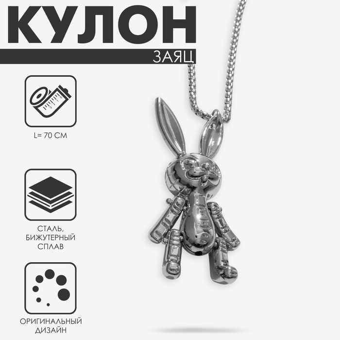 Кулон на цепочке «Заяц», стильный, цвет серебро, 70 см — Характеристики