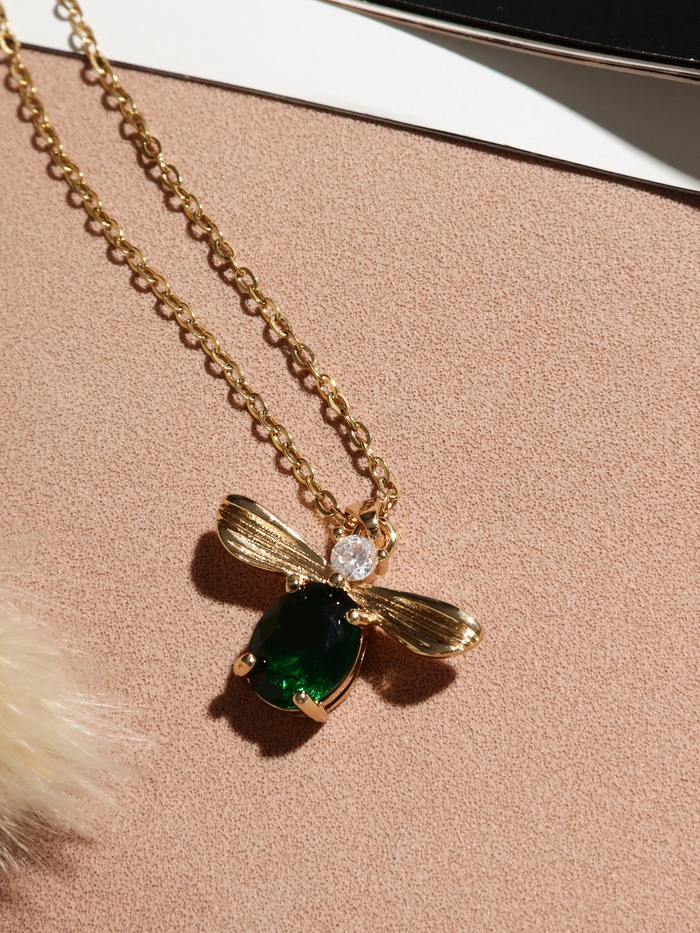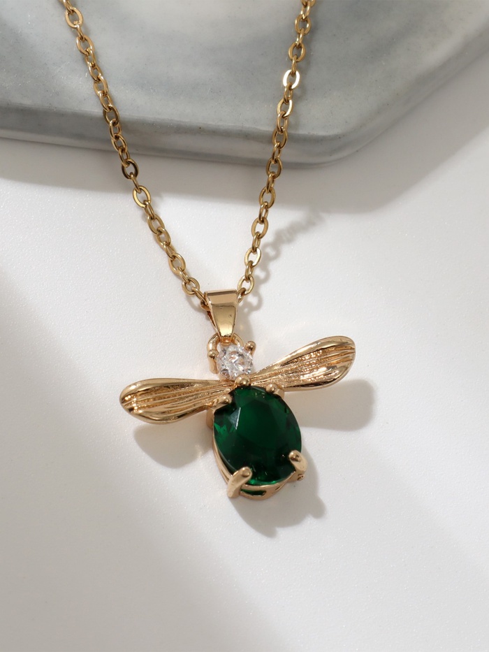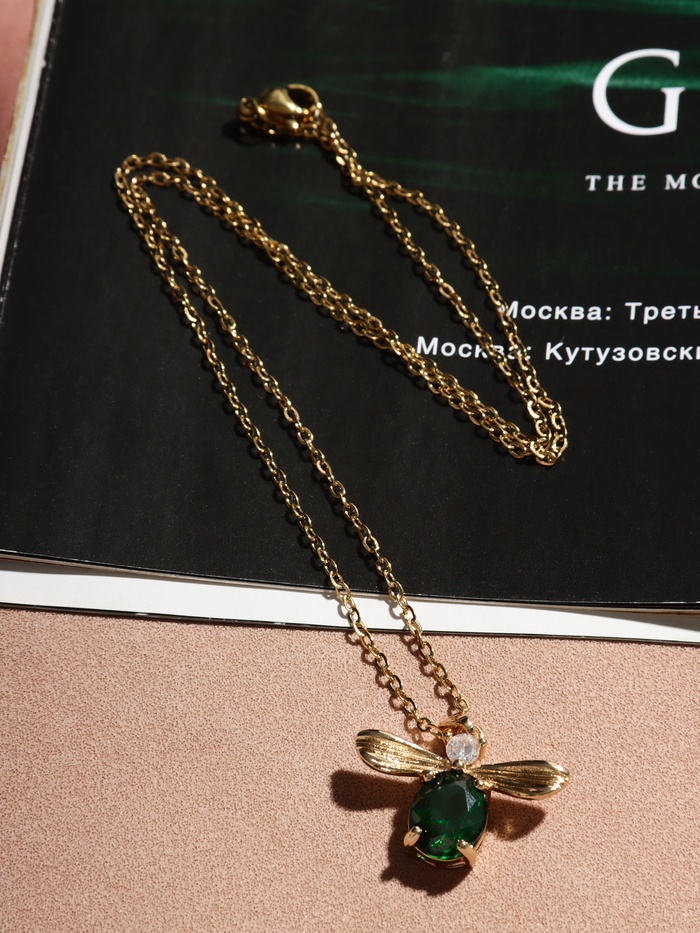 Кулон на цепочке «Жук», зеленая вставка, зелёный в золоте, 45 см — Характеристики