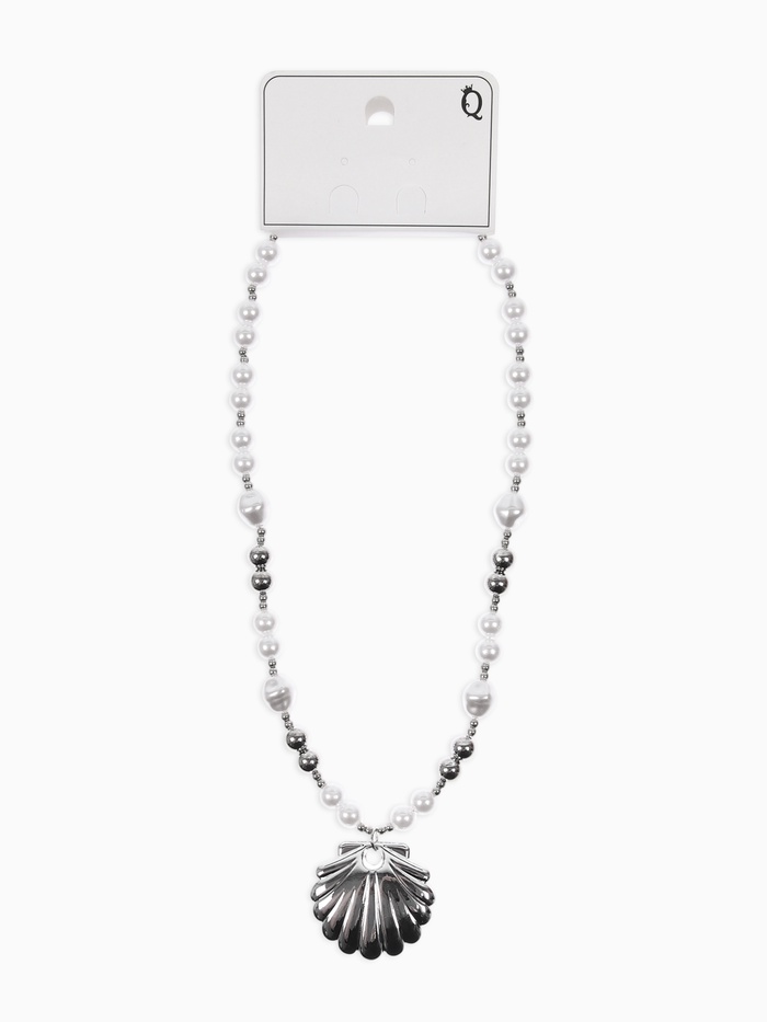 Кулон на жемчужных бусах "Ракушка", цвет белый в серебре