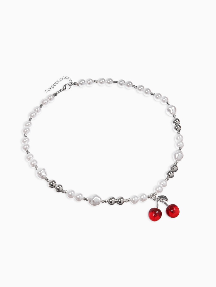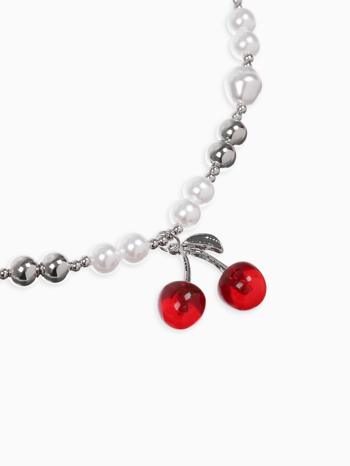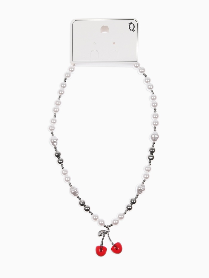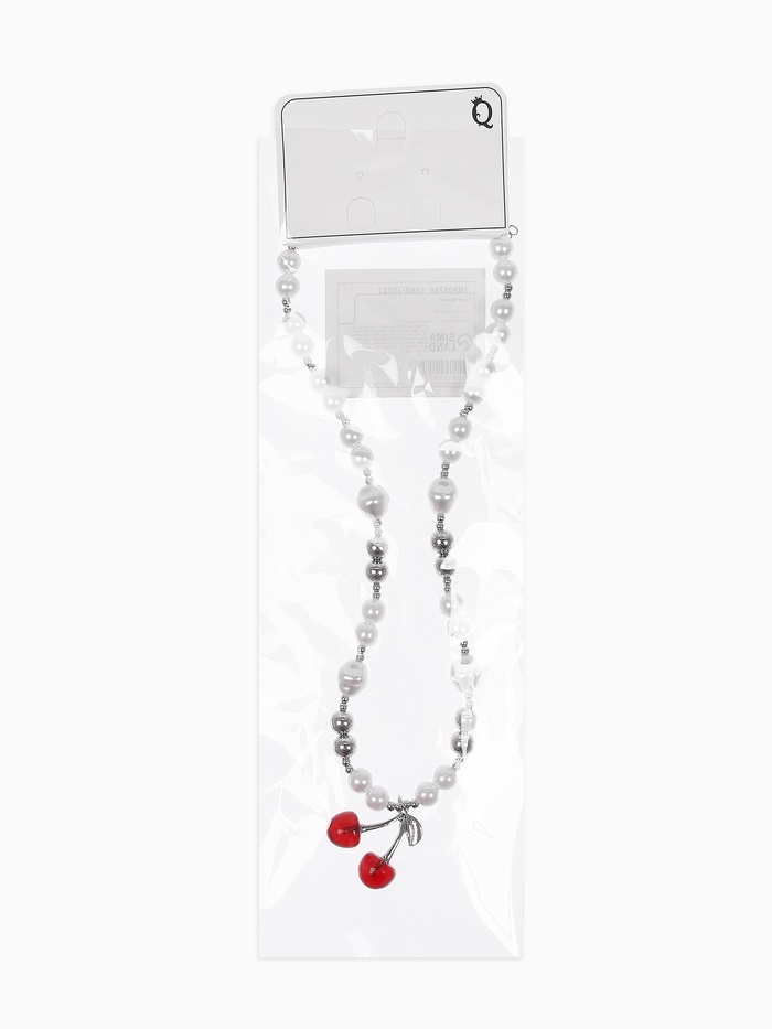 Кулон на жемчужных бусах "Вишня", цвет белый в серебре — Характеристики