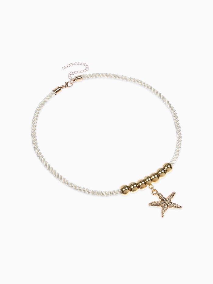 Кулон на жгуте текстильном "Морская звезда", цвет бело-золотой