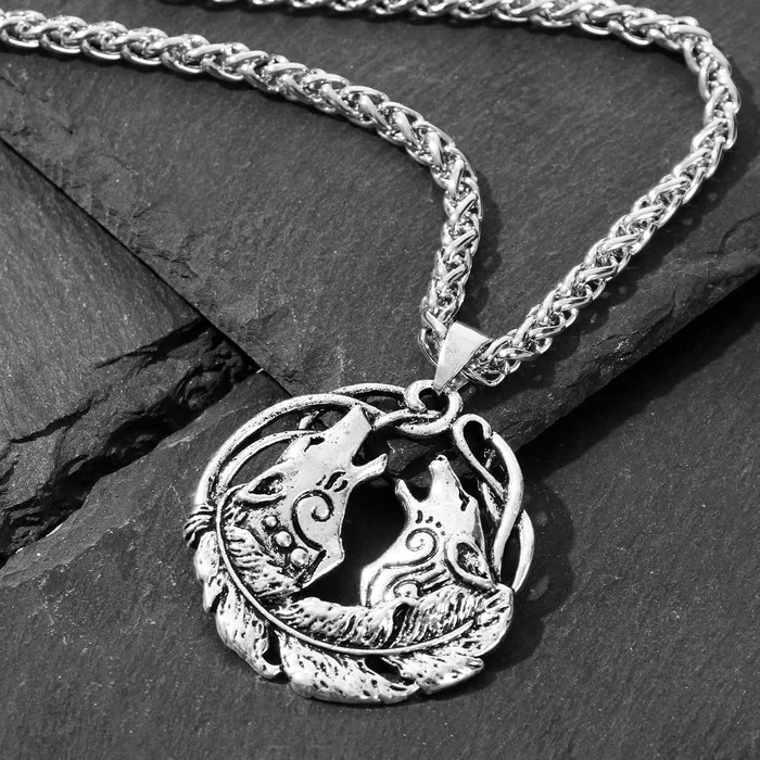 Кулон-оберег «Волки» воют на луну, цвет чернёное серебро, 59см
