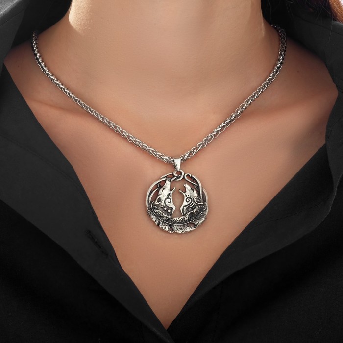 Кулон-оберег «Волки» воют на луну, цвет чернёное серебро, 59см — Характеристики