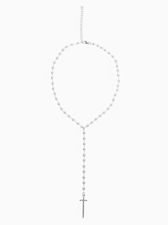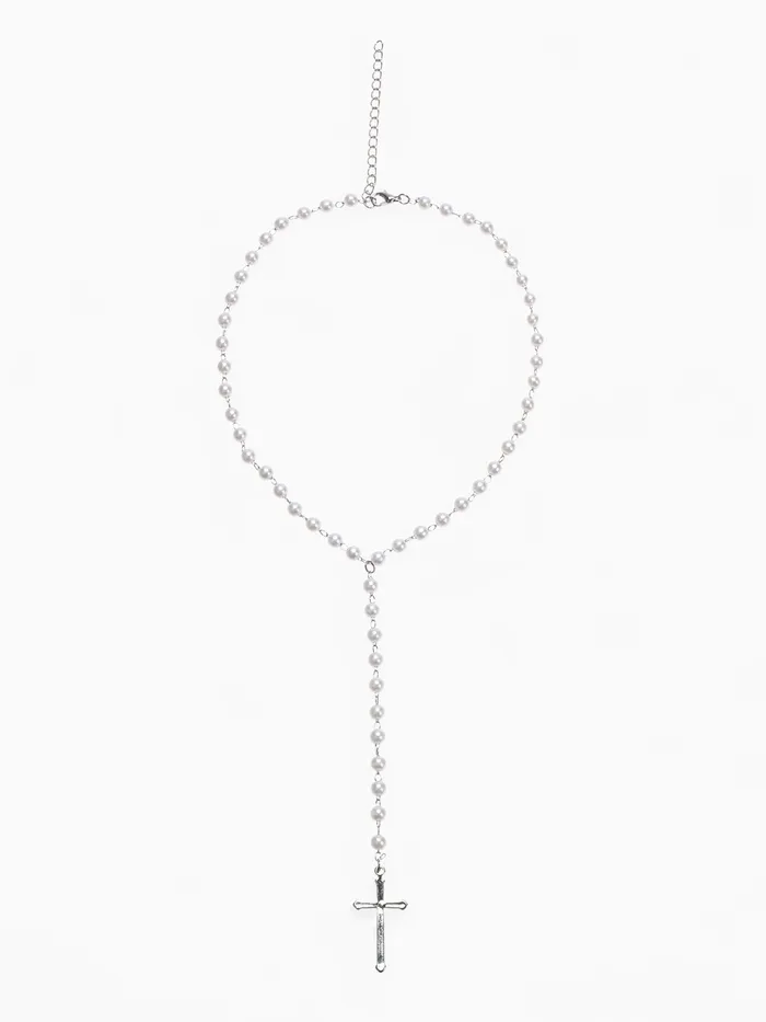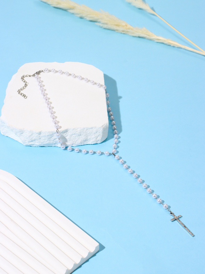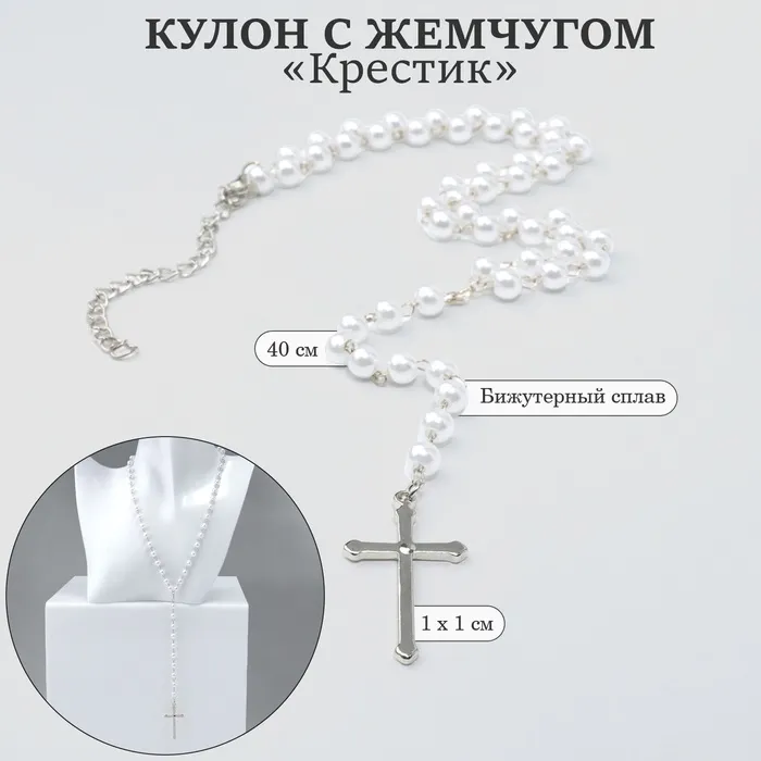 Кулон с жемчугом «Крестик» цвет серебро, 40 см — Характеристики