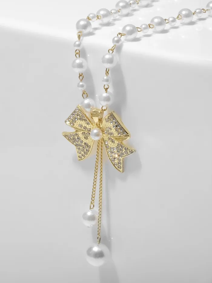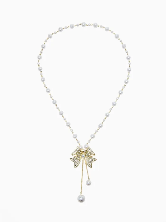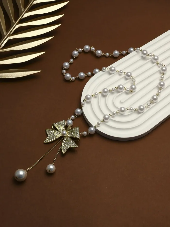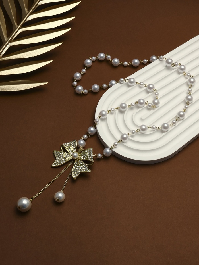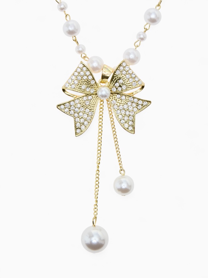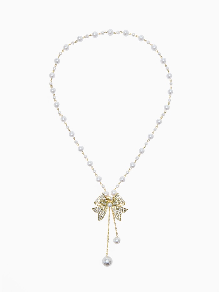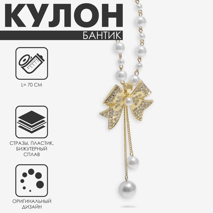 Кулон с жемчугом «Крупный бантик», белый в золоте, 70 см — Характеристики