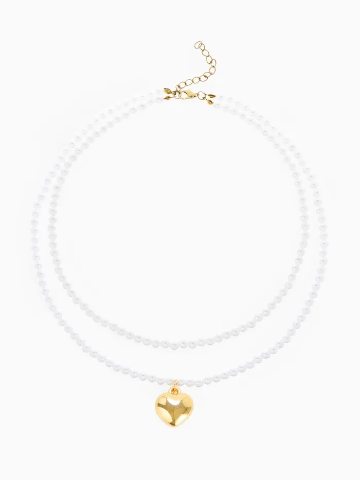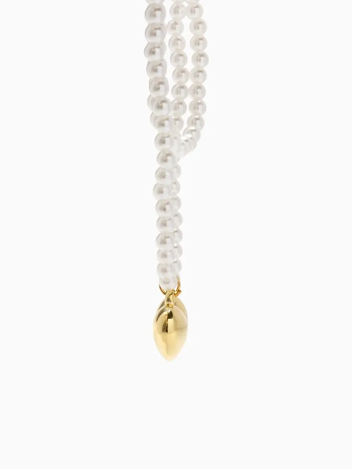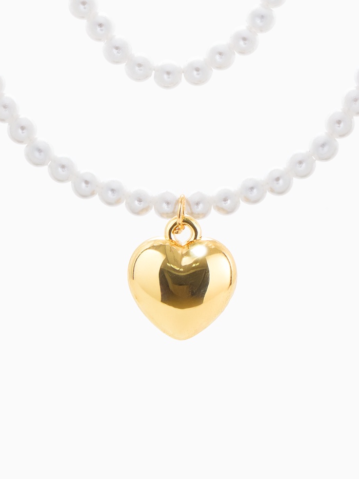 Кулон с жемчугом «Сердце» бусина №6, белый в золоте, 45 см — Характеристики