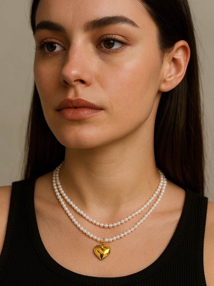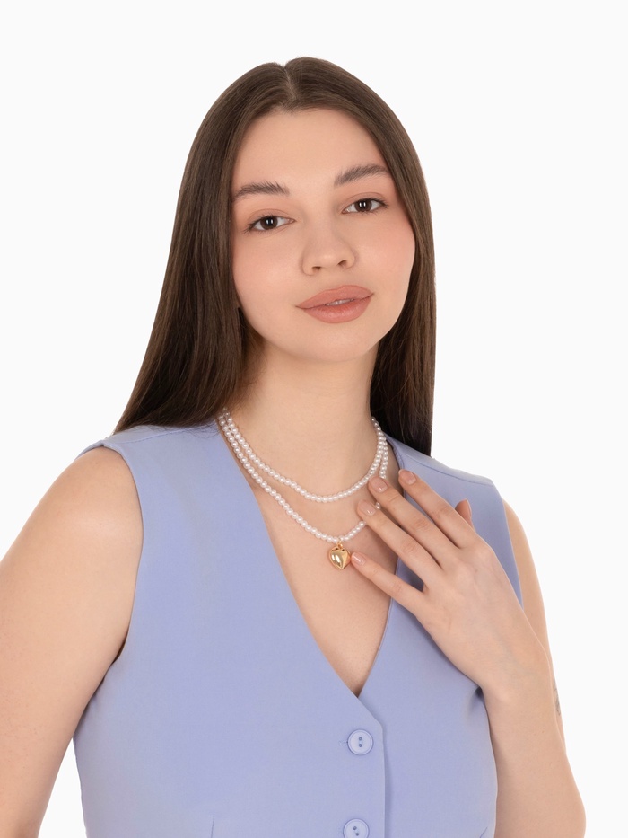 Погрузитесь в мир элегантности и утонченности с этим великолепным кулоном в форме сердца. Изготовленный из искусственного жемчуга и обрамленный золотой фурнитурой, он станет ярким акцентом в вашем образе, подчеркивая вашу индивидуальность и стиль.