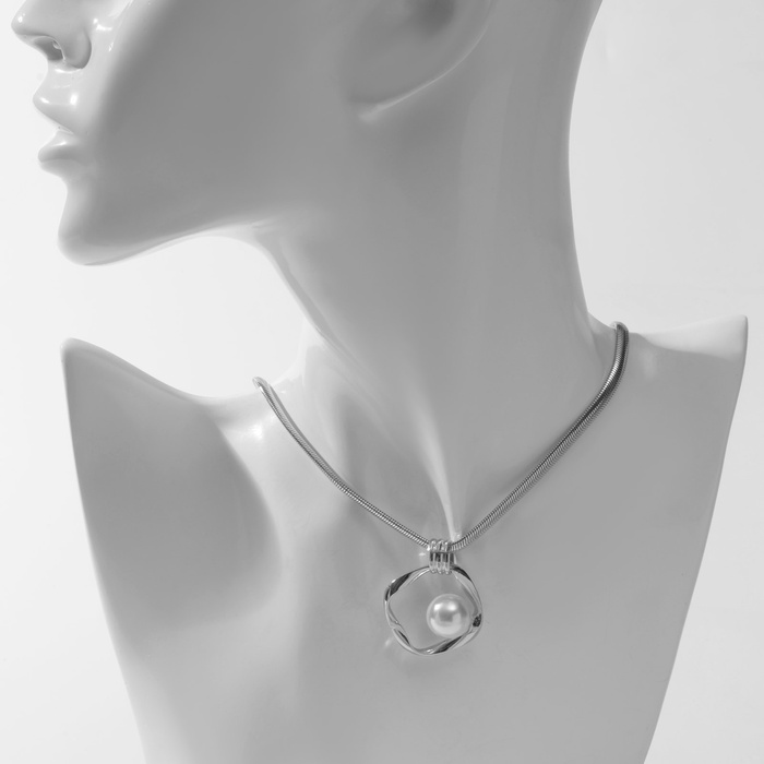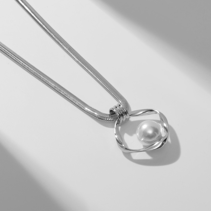 Кулон с жемчугом «Стиль» бусина в овале, белый в серебре, 40 см — Характеристики
