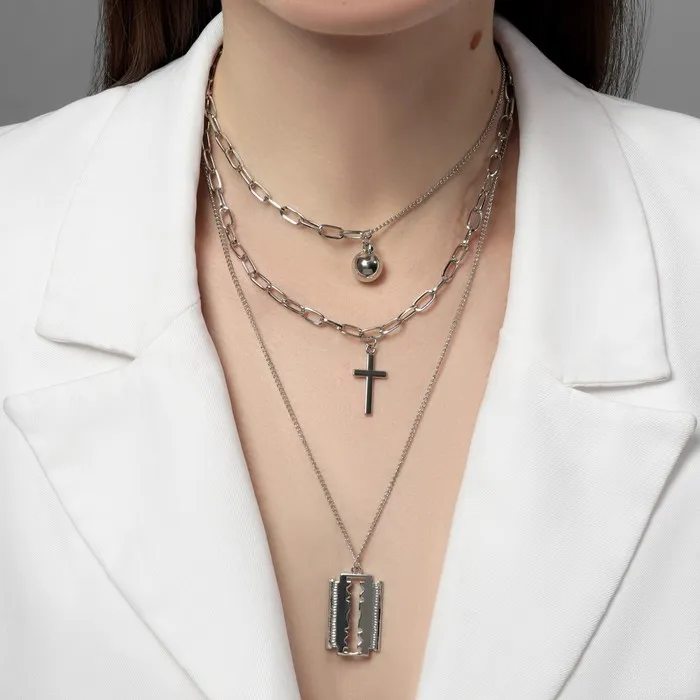 Кулон «Цепь» бритва, крестик, бусина, цвет серебро, 50 см — Характеристики