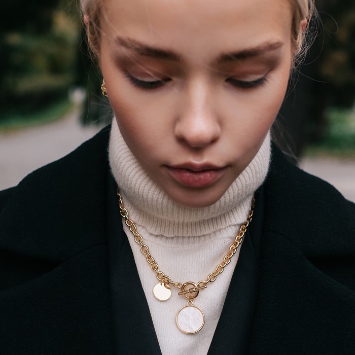 Кулон «Цепь» перламутровый медальон, цвет бежевый в золоте, 42 см — Характеристики