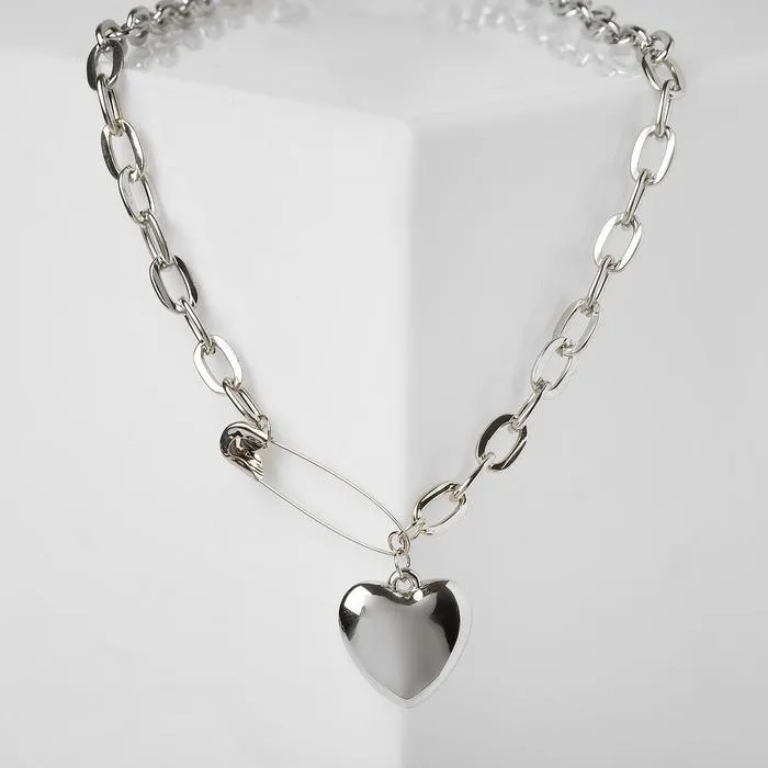 Кулон «Цепь» сердечко на булавке, цвет серебро, 50 см — Характеристики
