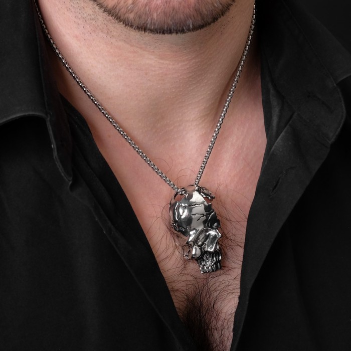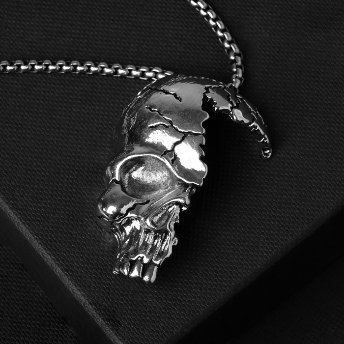 Кулон унисекс «Череп» половина, цвет чернёное серебро, 60 см — Характеристики