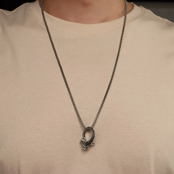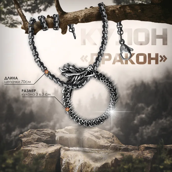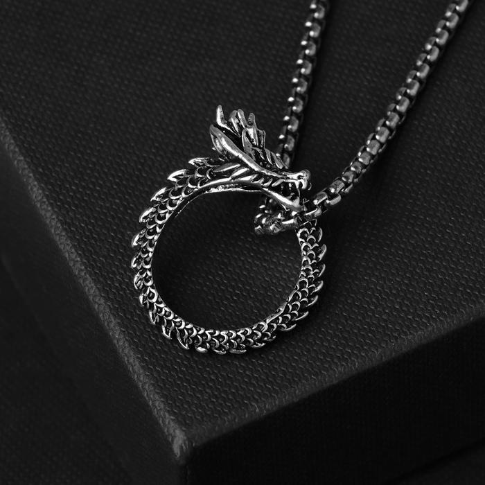Кулон унисекс «Дракон» в круге, цвет чернёное серебро, 70 см — Характеристики