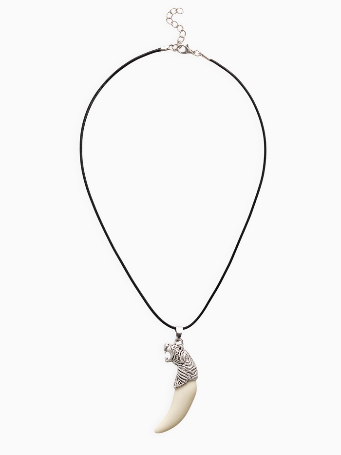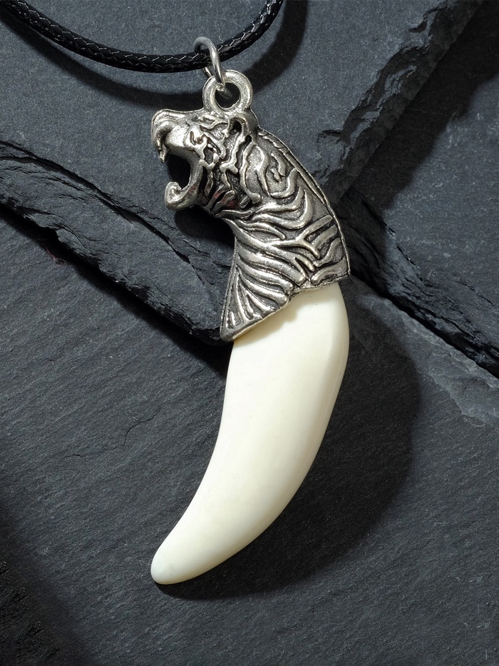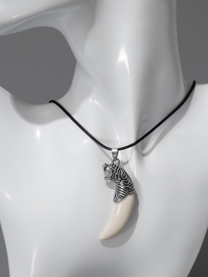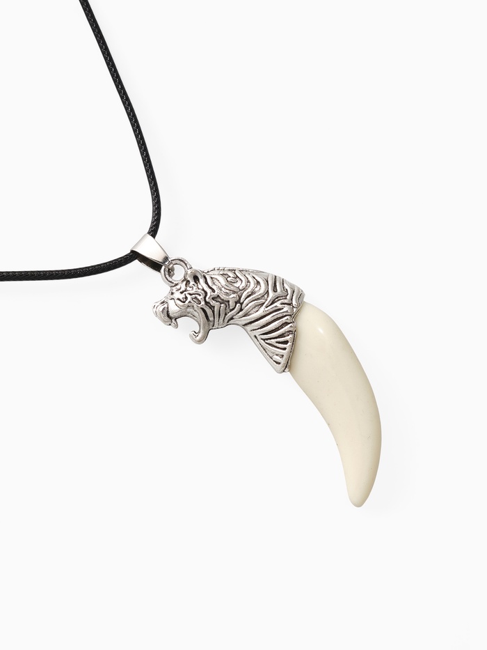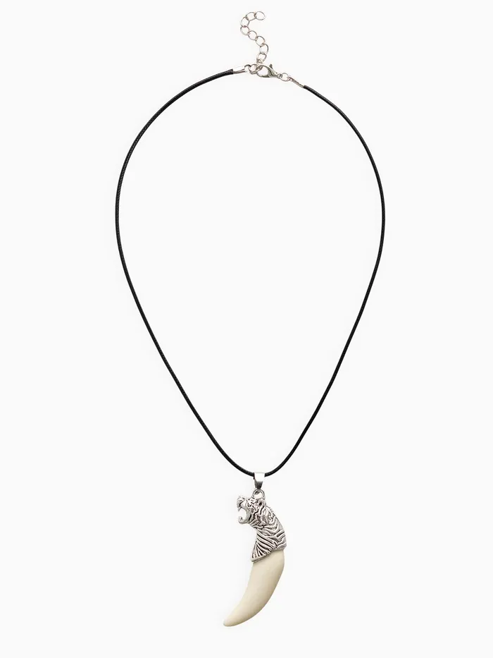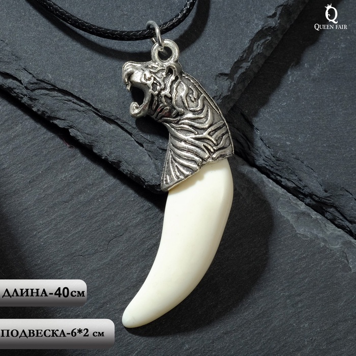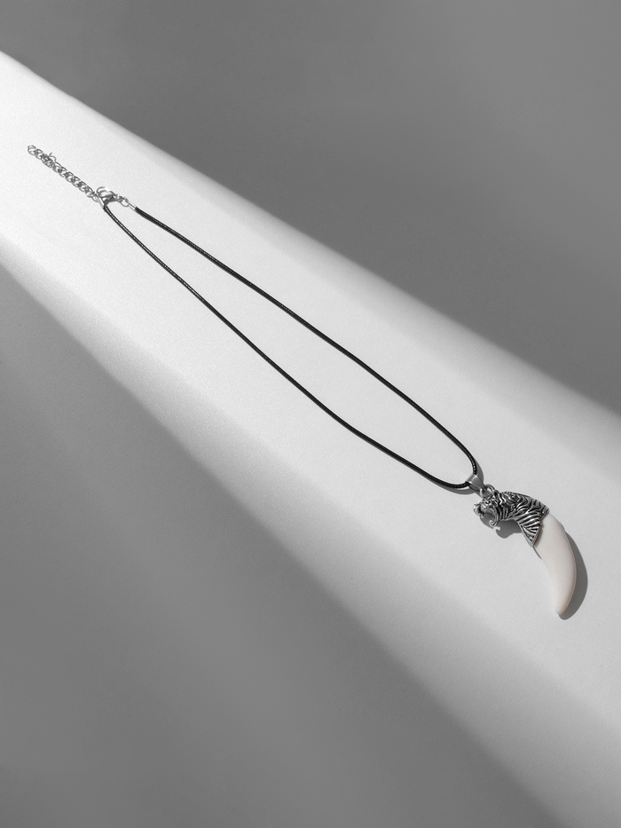 Кулон унисекс «Клык тигра», цвет белый в чернёном серебре на чёрном шнурке, 40 см — Характеристики
