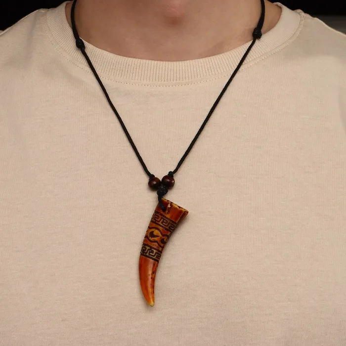 Кулон унисекс «Клык», цвет коричнево-чёрный на чёрном шнурке, 40-80 см — Характеристики
