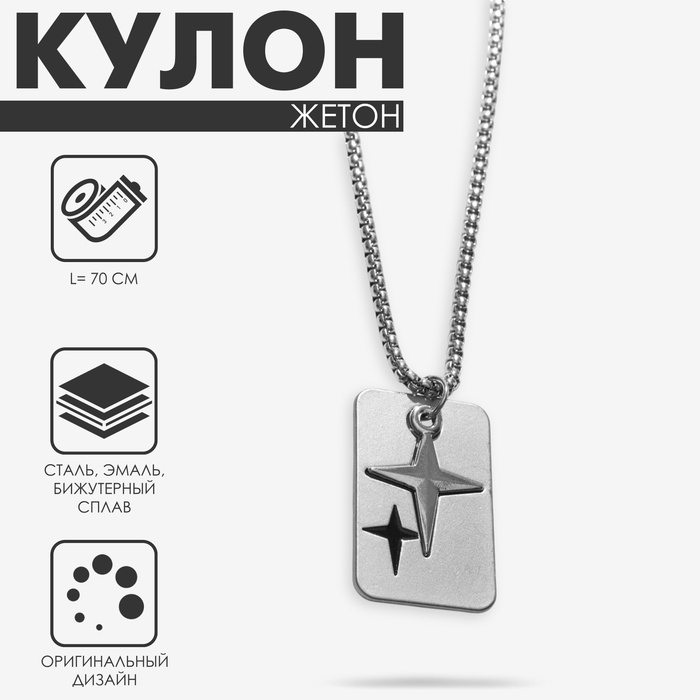Кулон «Жетон» звезда, цвет чёрный в чернёном серебре,, 70 см — Характеристики
