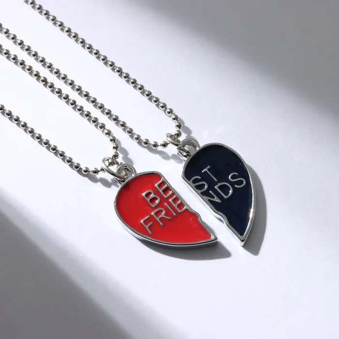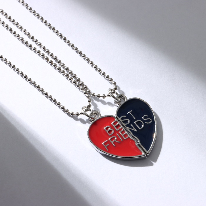 Кулоны «Неразлучники» best friends, сердце, цвет красно-синий в серебре, 45 см