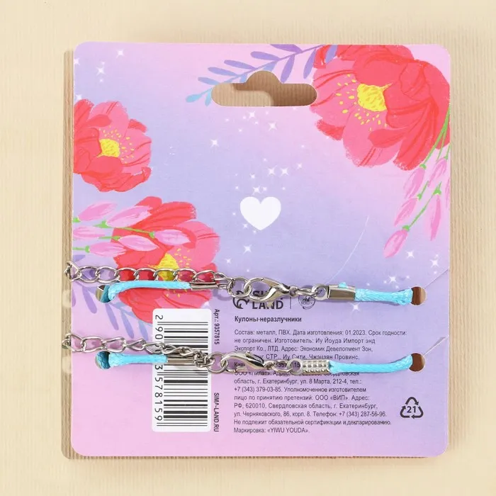Кулоны неразлучники «До луны и обратно», 2 шт, длина 40 см — Характеристики