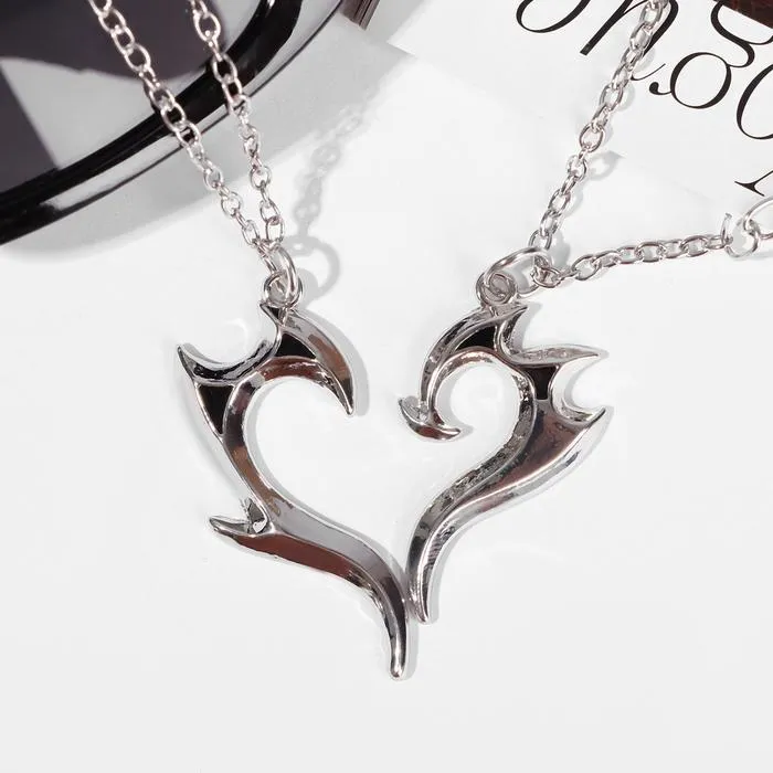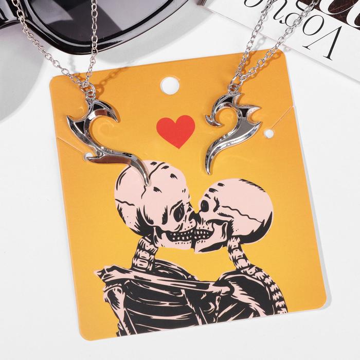 Кулоны «Неразлучники» горящее сердце, цвет чернёное серебро, 45 см