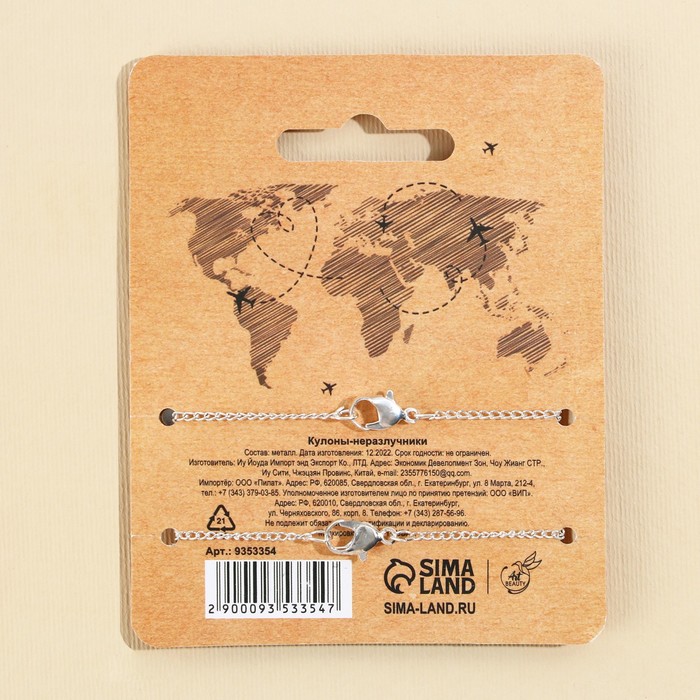 Кулоны неразлучники «Я всегда рядом», 2 шт, длина 40 см — Характеристики